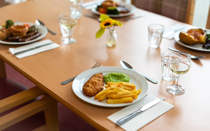 Residents are provided with three carefully planned meals each day, breakfast, lunch, and tea with refreshments and drinks provided throughout the day.